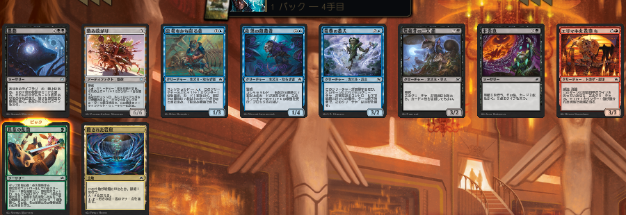 ここで色を決めることになりそう。悩んだ挙句《放浪語りの導師》ピック