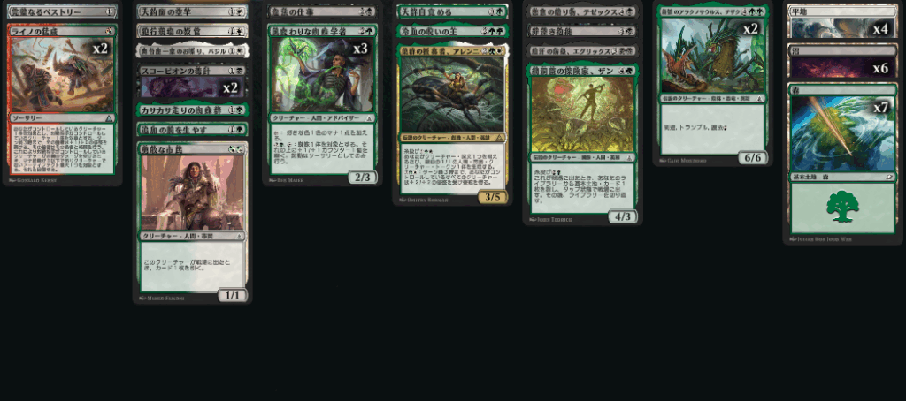 緑でマナサポート、黒で除去をがっつり採用する方針に