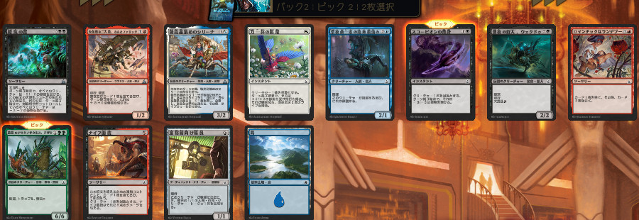 ここは白緑決め打ちで、緑のよさそうな2枚ピック