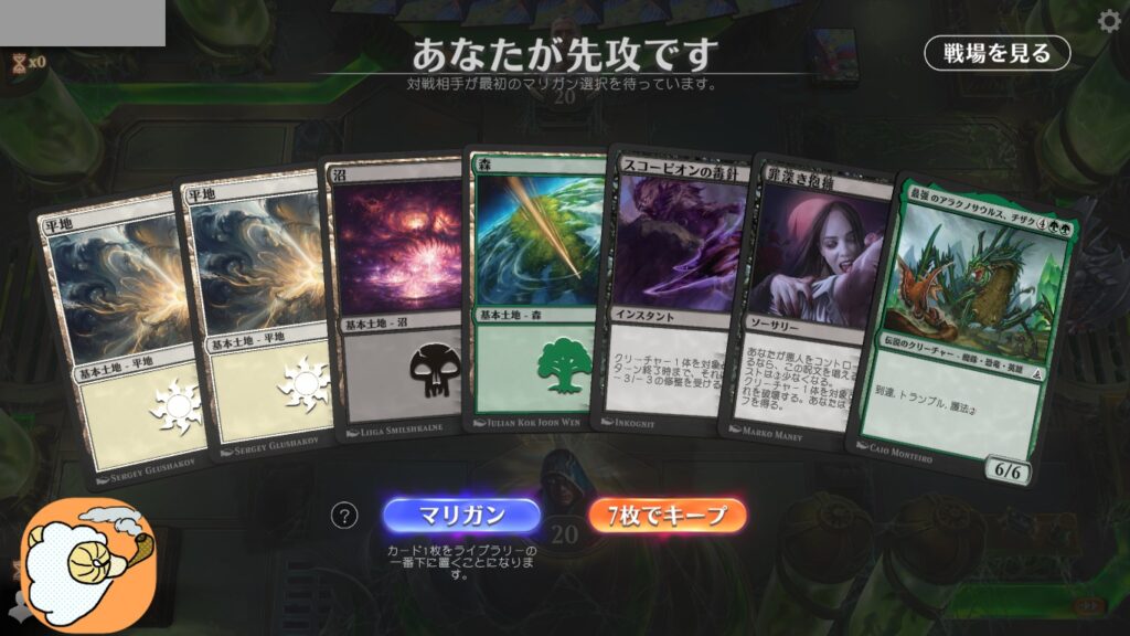 先手、微妙な手札をキープ