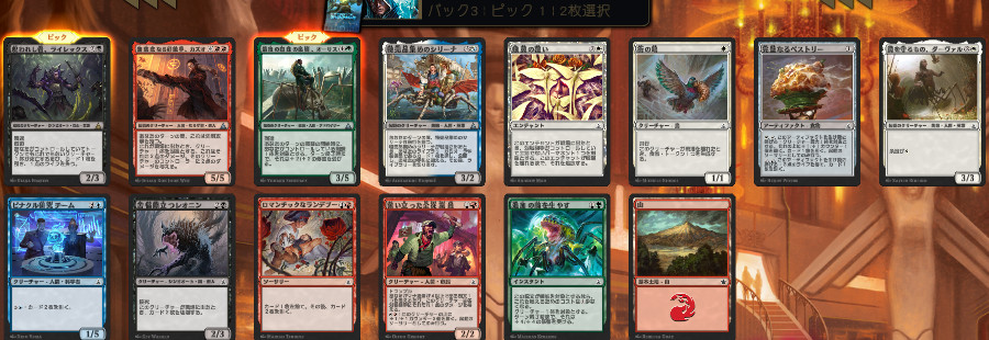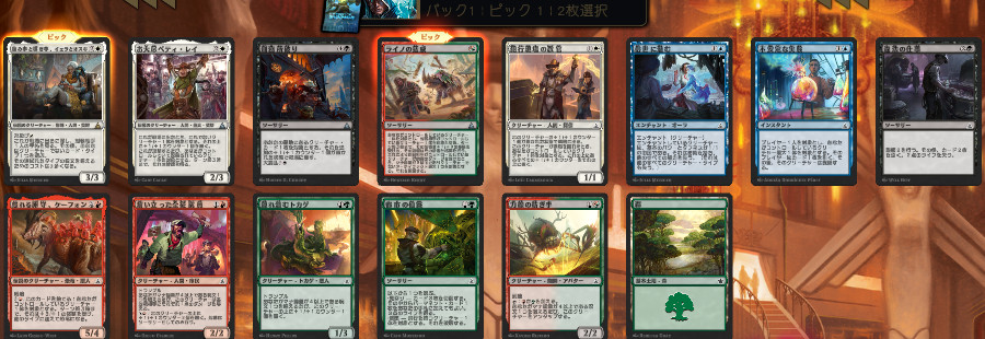 白のレアを取るとして、もう一枚を白のカードか赤緑1マナの除去で迷い中