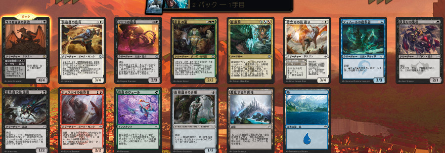 前回は多色環境だからと強そうなカードをとりあえずピックしてましたが、今回はテーマと色を決めてなるべく事故を減らして戦っていきたいです。