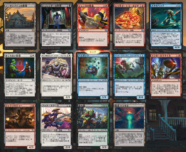 2パック目でレアがいっぱいピック出来たので、緑青のアーティファクトシナジーの方向性で決定